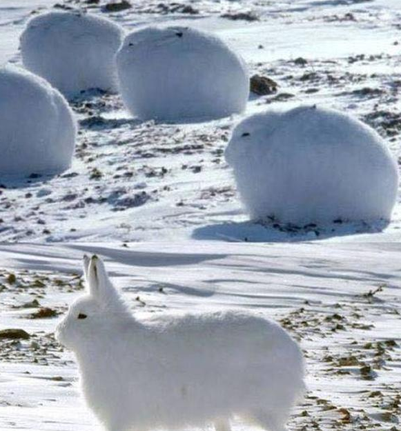 The arctic hare or “polar rabbit” has evolved tremendously to better suit their surroundings. The arctic hare is actually brown when the weather is warmer to help them blend in with the green and brown earth around them. In the winter, their coat turns extremely white to help them blend in with the snow.