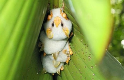 These adorable little cotton-ball-looking things are actually white bats from Honduras. Most bats hang out in caves, but these cuties choose to hang between two large leaves. Where most black bats are associated with darkness and have taken on a spooky reputation, these white bats are quite the opposite.