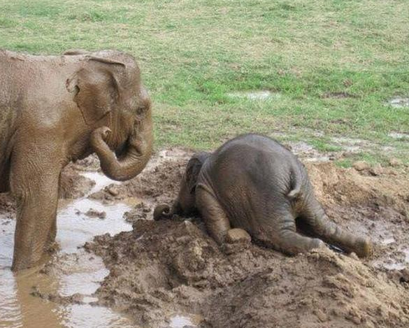 Baby elephants have temper tantrums! In this photo, this cute baby elephant was displeased with something and decided to throw himself in the mud. Apparently, baby elephants are known to throw temper tantrums pretty often. I guess we aren’t the only dramatic species – elephants have their moments, too!