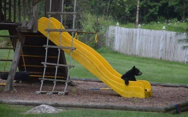 The cutest little baby cub in the world has found his way to a human slide. While bears are finding their way to neighborhoods more and more often these days, we need to be very careful. Just because this bear cub is adorable doesn’t mean you aren’t in danger. His mama is surely right around the corner watching his every move.