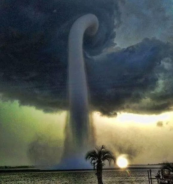This is a waterspout and yes, it is real. According to oceanservice.noaa.gov, “Tornadic waterspouts are tornadoes that form over water, or move from land to water. They have the same characteristics as a land tornado. They are associated with severe thunderstorms, and are often accompanied by high winds and seas, large hail, and frequent dangerous lightning.”